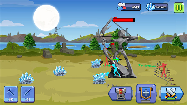 终极火柴人帝国是一款策略深度与操作乐趣兼具的火柴人题材塔防+即时战斗融合型手游。玩家在持续征战中逐步解锁弓箭手、矿工、棍棒手等多元兵种,依据其特性灵活编组阵型、调配资源、制定战术,以指挥官身份统筹全局,率军攻破敌方防线,最终建立属于自己的火柴人帝国。