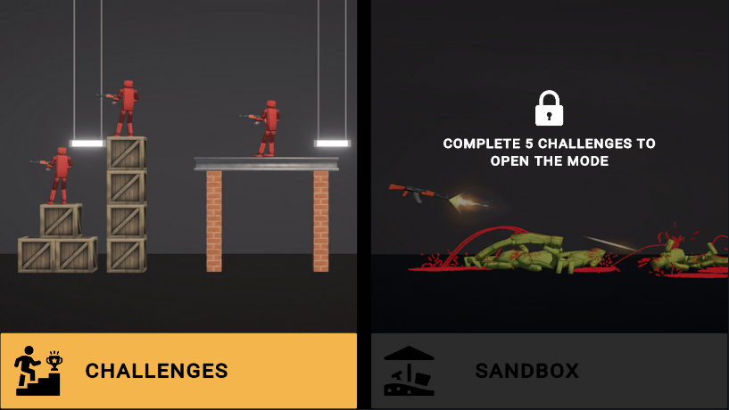 首先进入主界面,点击“Challenges”开启挑战模式;操作极为直观——长按拖拽即可控制火柴人发射方向与力度。