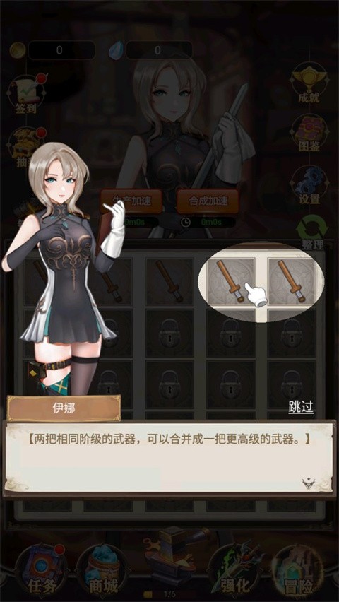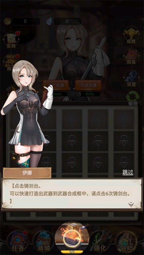 首次进入游戏,请连续点击铸剑台6次,快速积累初始武器并填满合成框。
