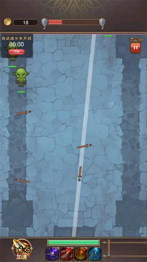 开启右上角【自动战斗】开关,解放双手,实现挂机式闯关。