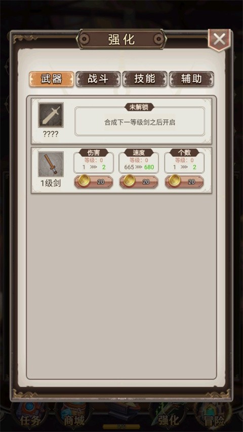 任意两把相同阶级的武器,拖入合成区域即可自动融合,生成更高阶的新武器。