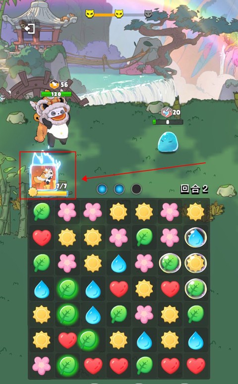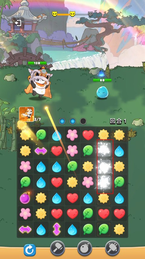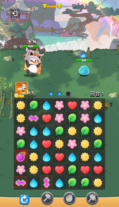 本作以核心三消机制驱动战斗节奏:玩家通过匹配消除方块,为己方小动物实时赋予攻击、恢复或防御等不同增益效果。