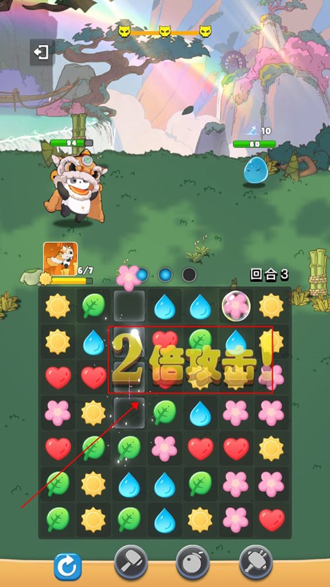 每次成功消除均会为小动物累积攻击力,待回合结束时自动释放,对敌方目标发起精准打击。