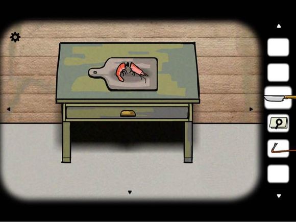 成功钓起一只虾,将其置于砧板上用刀切为两段,从中获得一枚钥匙。