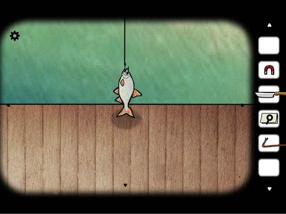 使用刚获得的钥匙开启图示小柜,取出灰色物质;以此物为饵再次垂钓,收获海螺。