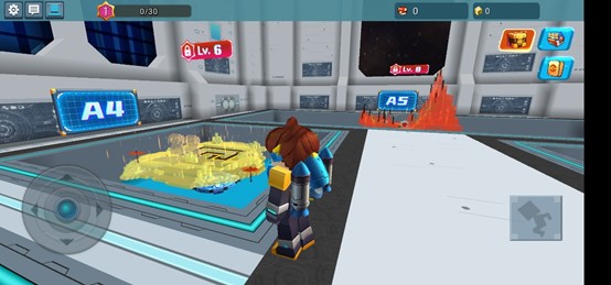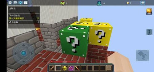 核心机制围绕“击碎方块—获取资源—压制对手”展开:小岛上的箱子产出幸运方块,击破后随机掉落装备或道具;利用石块快速搭建路径接近敌人,发起进攻。