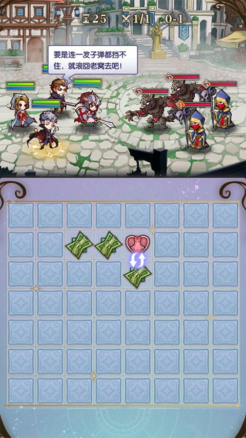 战斗界面顶部显示我方血量条,受敌方攻击时将实时减少。