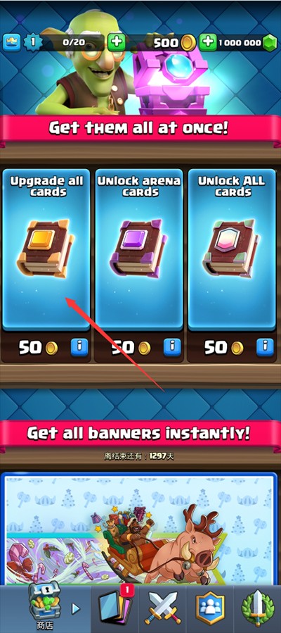 全部购齐后,所有卡牌与道具将自动完成满级解锁。