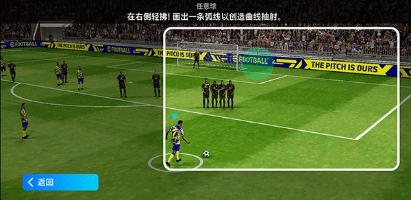 2、任意球:于右侧区域滑动绘制弧线轨迹,决定球路旋转与落点