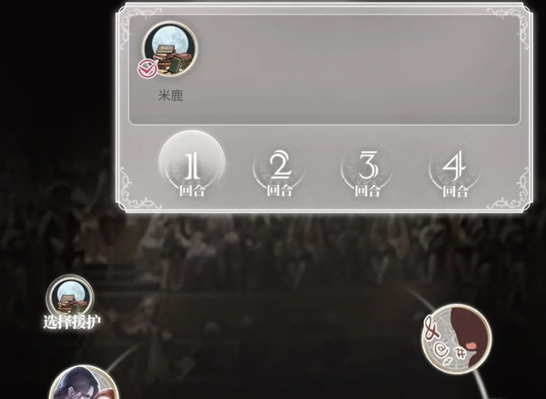 8、点击“选择援护”,在一回合内投入强力援护角色,直接跳过本场战斗(援护仅限单次使用)。