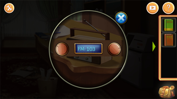 第四步:依据书页线索,将桌面上的收音机调至FM103频段。