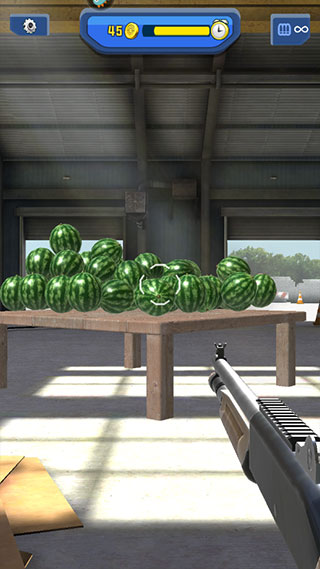 核心玩法是在限定时间内,使用当前装备的枪械击碎西瓜等靶标物品。