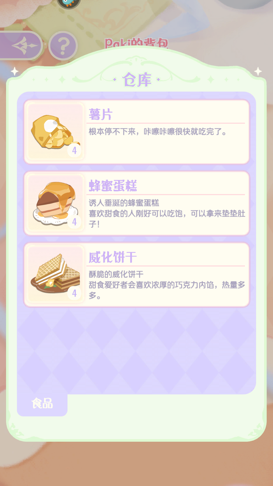 Paki适配性极强,薯片与南瓜派触发率最高,饼干、蛋挞、蛋糕等亦常奏效;清水多优先供给UNO;
