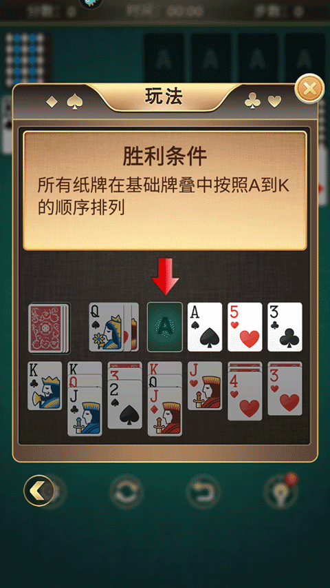 达成胜利的核心条件:所有纸牌须在基础牌叠中完整组成A至K的升序排列。