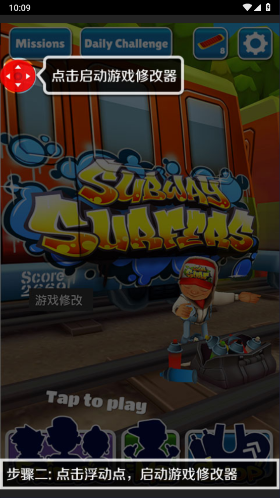 2、在目标游戏中触发悬浮控件,激活修改器服务;