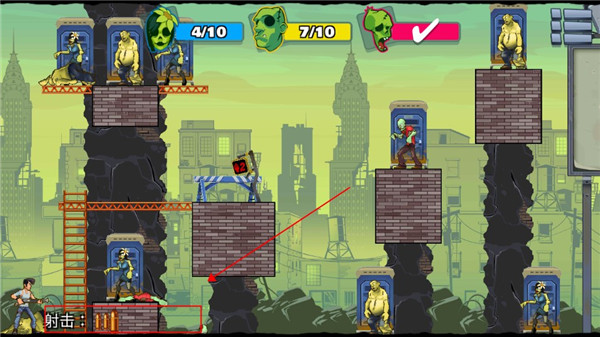 瞄准过程中,若弹道覆盖僵尸,其头顶将动态浮现“+分值”提示;覆盖加分目标越多,路径越优,但须优先确保指定目标清除,以保障通关成功率。