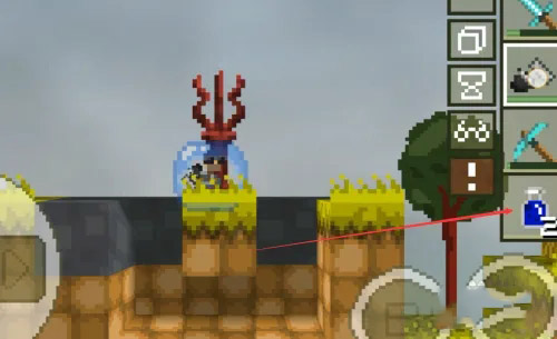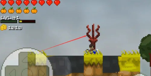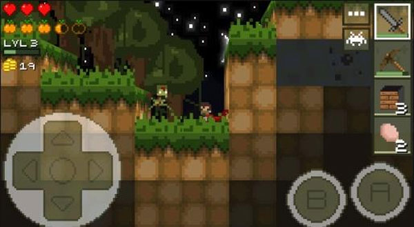 游戏构建了一个动态且富有挑战的地下世界。玩家需在白天积极砍树、挖矿、狩猎以获取资源,同时注意饱食度管理——所有行动都会消耗体力,一旦饥饿值归零角色便会死亡。夜晚则危机四伏,僵尸与骷髅怪物会主动袭击,必须提前建造庇护所并升级装备进行防御。角色每升至4级和8级可分别增加一格血量,逐步提升生存能力。此外,游戏采用双界面操作机制:按住上方向键+B可进入后方图层进行伐木或挖矿,连续点击跳跃实现二段跳,极大拓展了探索维度。