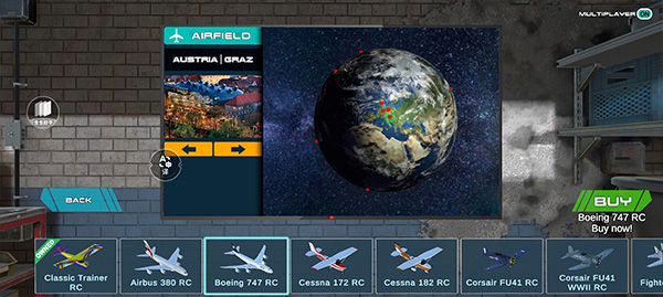 1、在本站下载安装好遥控飞机模拟器手游最新版后,打开进入在底部选择自己喜欢的飞机型号。