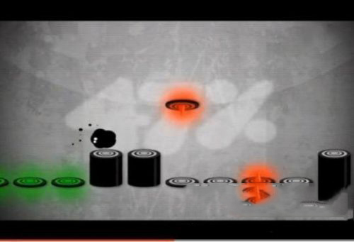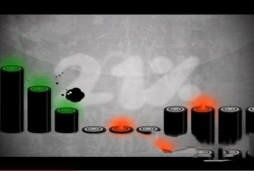 游戏采用极简的一键式操作:点击屏幕,小墨点便会随音乐节奏在支点间跳跃。但别被简单操作迷惑——红色尖刺、钉柱、高低错落的平台都将成为你的致命阻碍。高台需提前起跳,红色障碍则必须配合绿色着陆点才能安全翻越。当多个支柱密集出现时,更考验你的快速判断与节奏把控能力。在这里,节奏不是辅助,而是通关的唯一法则。
