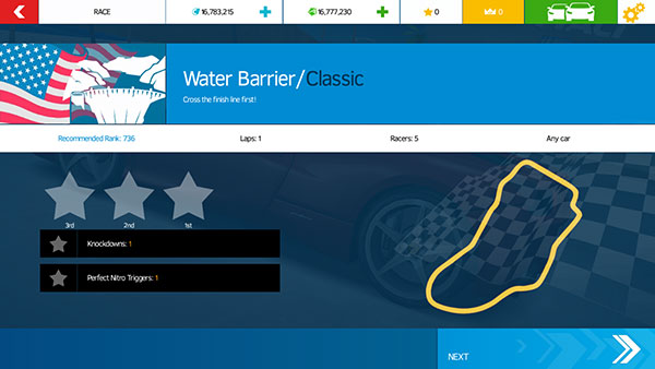 3、接着我们再选择本局游戏所使用的【赛车】,选择完成后再次点击【NEXT】按钮。