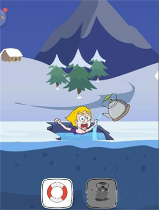 第2场景:不慎掉入冰窟窿。选择【热水壶】,倒入热水后竟舒舒服服洗了个澡再爬出来。