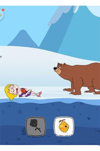 第2场景:遭遇灰熊拦路。选择【玫瑰花】,小姐姐灵机一动倒地装死,成功骗过灰熊。