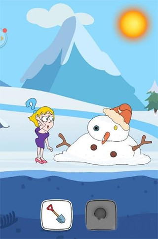 第1场景:小姐姐被雪人挡住去路。选择【太阳】,雪人迅速融化,道路畅通。