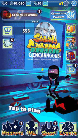 在mission中,还有一个daily challenge,每日挑战,在地铁跑酷游戏中会随机出现字母,获取字母完成单词会获得一个神秘盒子,开出角色徽记(收集后用来解锁角色)或者道具。