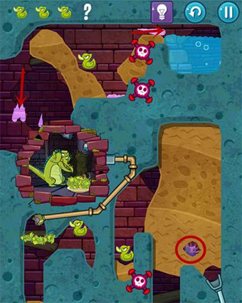 操作直观易上手:只需用手指“刨开”棕色泥土,规划水流路径,确保清水安全抵达小顽皮的浴缸。但别忘了,沿途散落的小鸭子和隐藏道具同样重要——尽可能全部收集,才能达成完美通关。随着关卡推进,你将面对藻类疯长、毒泥腐蚀、机关触发等复杂陷阱,需灵活组合清水、毒水与蒸汽的特性。例如,绿色水草遇水会迅速蔓延堵塞管道,此时可先用毒水清除障碍,再引入清水完成任务。
