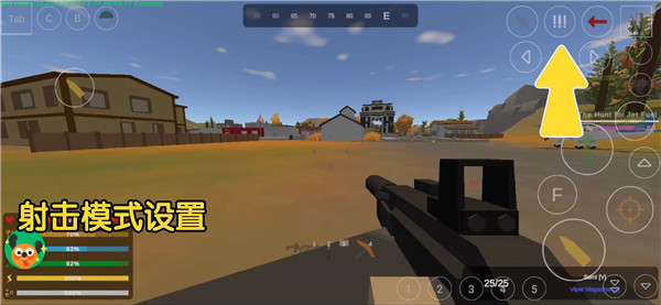 1、进入游戏界面,点击右上角的菜单设置,可以看到当前射击的模式