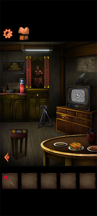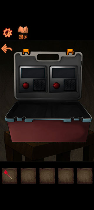 2、再点击电视屏幕得到楼梯下工具箱的数字线索密码5273,打开工具箱获得两个探音器。