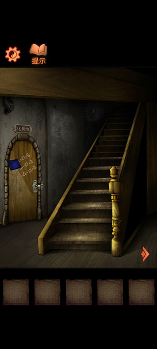 7、再点击下方抽屉得到蓝色毛巾。从神像下方柜子中获得撬棍,去楼梯处左边的房间,用蓝色毛巾擦拭化粪池门上的灰尘,查看并解开方程式得到密码251。