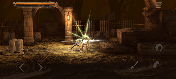 4、采用经典横版操作布局:左侧虚拟摇杆控制移动,右侧按钮负责攻击、跳跃与冲刺等动作;