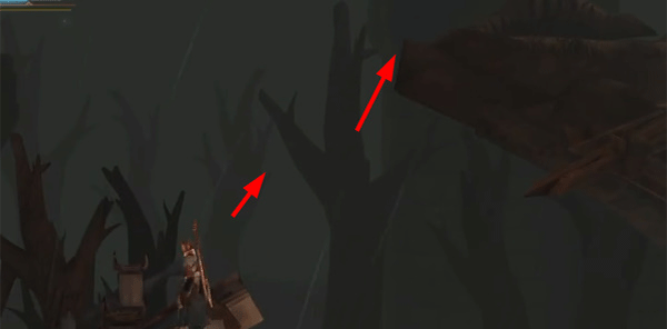 3、借助左侧平台垫高位置,向上跳跃至高处平台;