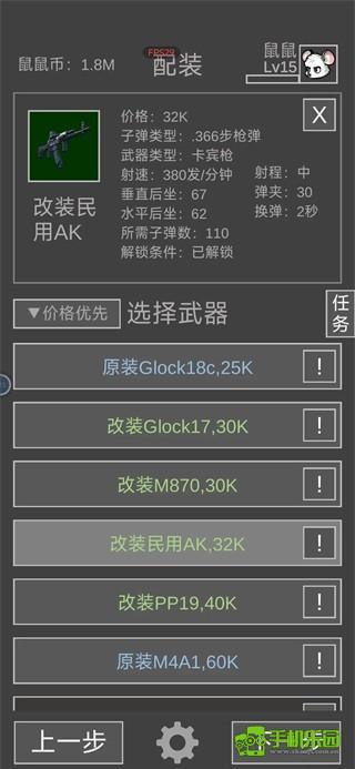 优先选择中距离及以上射程的武器,前期仅有AK符合这一标准。