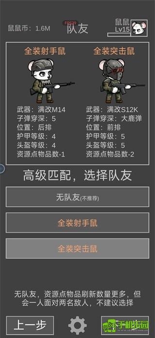 队友推荐选择突击鼠鼠;若条件允许,可通过观看广告刷新出紫色品质或更高的鼠鼠,这类角色兼具高输出与高生存能力,尤以携带鹿弹或达姆弹的突击鼠为最佳。