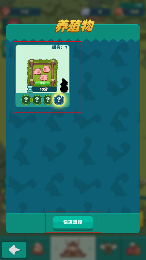 快速选择你想要养殖的动物,选择好之后返回到主页面;