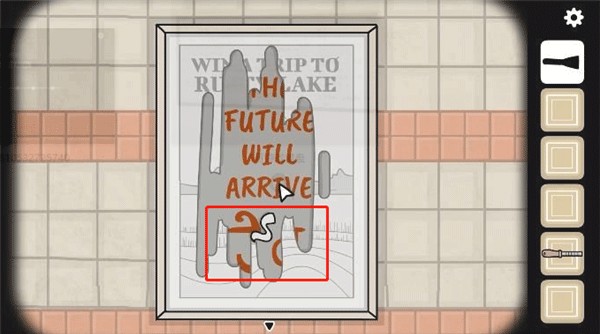 10、使用铲子刮开墙上的画作表层,显现出一个神秘符号图案