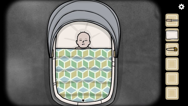 6、接近婴儿车,将白布作为尿布交给劳拉,安抚她的哭闹