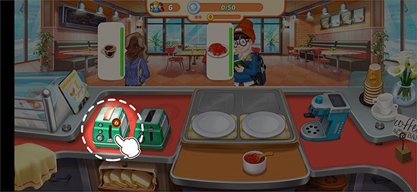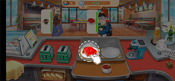 4、轻松点击完成烘烤、煎炸、装盘与上菜全过程,体验真实又不失趣味的餐饮运营