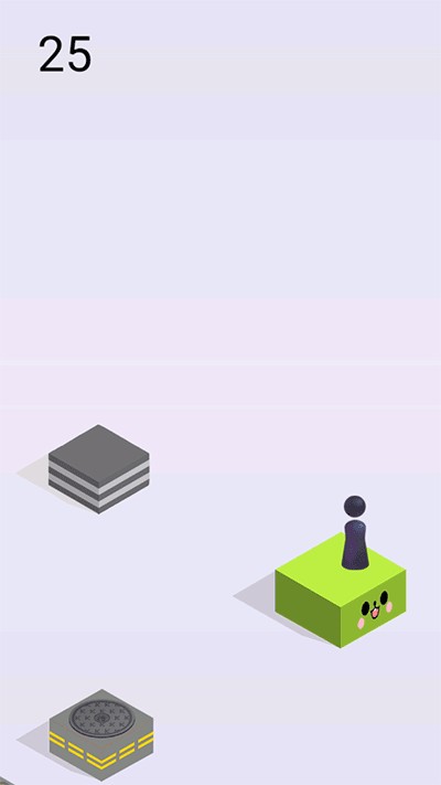 玩家通过长按屏幕蓄力,松手瞬间控制小人跃向下一平台。跳跃距离由按压时长决定——按得越久,跳得越远;松手越准,落点越稳。目标直指高分:精准落在方块中心可获基础分,特殊方块触发额外加分机制,而持续稳定的节奏感,才是突破百步、冲击排行榜的关键。