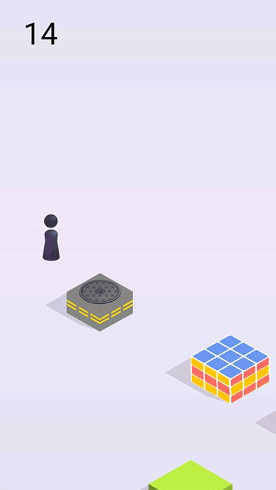 游戏精心设计了多种主题方块,每一种都对应独特机制与丰厚奖励:跳中“井盖”中心可获额外分数;魔方方块需落于中央,待其自动旋转归位后加10分;百货商店型方块任意安全落点均可触发嘈杂音效,稳定加分15分;留声机方块则需耐心等待一段旋律播放完毕,即可豪取30分——观察、预判、掌控,让每一次起跳都充满期待。