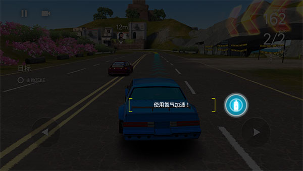 4、进入极限赛车破解版中文版比赛界面后,遇到弯道可长按右侧开始漂移;