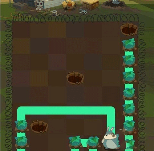游戏采用经典“一笔画”逻辑,但注入鲜活角色设定:从起点出发,规划唯一通路,沿途必须吃光所有目标蔬菜(如胡萝卜、卷心菜、茄子、花朵等),且不可遗漏、不可折返、不可越界。每只兔子拥有专属食谱——Calvin只啃胡萝卜,Otto专攻卷心菜,Peanut偏爱嫩芽……多兔同屏时,更需统筹路径顺序与作物分布,考验空间预判与策略排序能力。