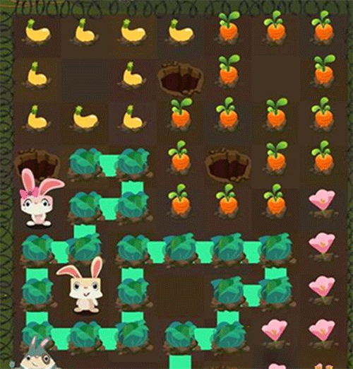 第四步:最后由小小兔吃掉茄子,全员归洞,完美收官!