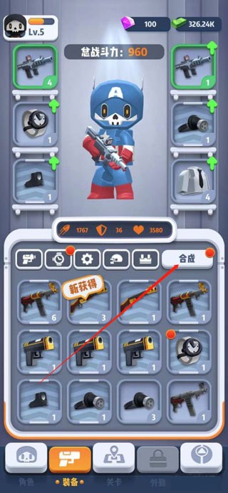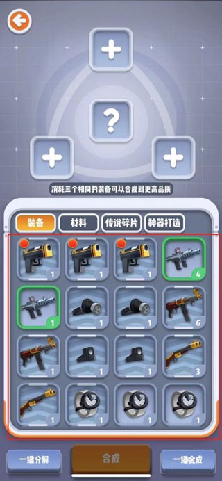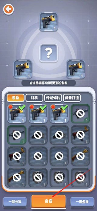 3. 选定目标装备,勾选3件相同品质武器 → 点击【合成】,即刻生成更强力神装!