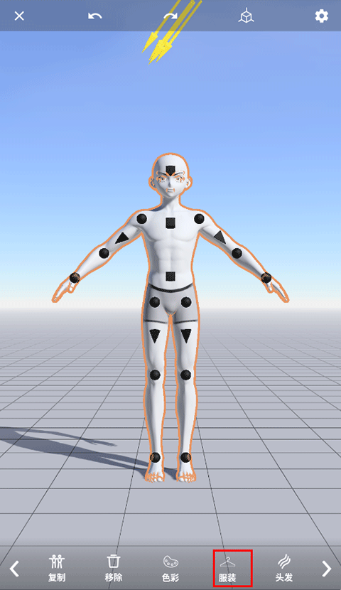 2、滑动底部工具栏,找到并点击“服装”分类;