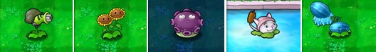 毁灭蘑菇清屏造坑、睡莲拓展水域、窝瓜单体秒杀、三管豌豆火力倍增、海藻水下绞杀、胡椒横排蒸发、棘草持续刮痧、火炬树桩伤害增幅、巨型墙果空降拦截、海蘑菇水生补位……