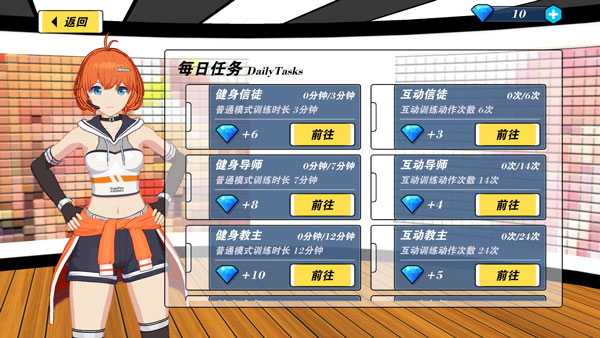 《我的健身教练2内置菜单版》是一款融合二次元美少女养成、轻量级健身互动与趣味化动作识别的创新型手游——它不是枯燥的训练工具,而是一位会陪你挥汗、为你打气、随进度成长的“专属虚拟健身伙伴”。通过重力感应实时捕捉手机姿态,模拟仰卧起坐、俯卧撑、深蹲等基础动作,让健身过程告别单调;搭配角色养成、服装解锁、课程进阶等丰富玩法,在轻松娱乐中悄然提升体能,特别适合久坐党、健身新手和二次元爱好者开启健康生活第一步。