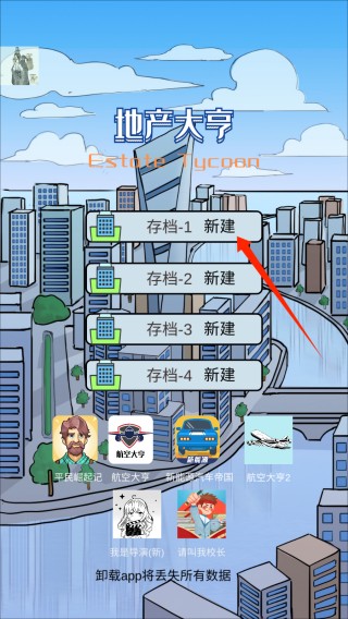 1、首次启动即进入主界面,点击【新建存档】创建专属发展档案;